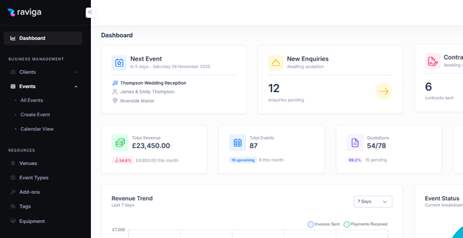 Raviga is the all-in-one booking and admin tool for entertainers, DJs, bands, magicians, and event suppliers.