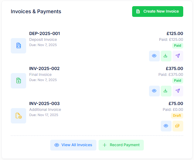 Generate and send fully branded invoices in seconds, and effortlessly track and record payments in no time at all!